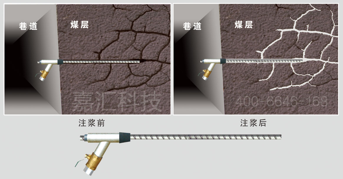 在現(xiàn)有的錨桿封孔中用錨固劑來加固錨桿,錨桿耐拉力小,加固不牢,周邊裂隙進(jìn)不去沙漿不能加固。用空心錨桿注沙漿可達(dá)到加固作用,但空心錨桿價(jià)格高,拉力不如螺紋鋼。